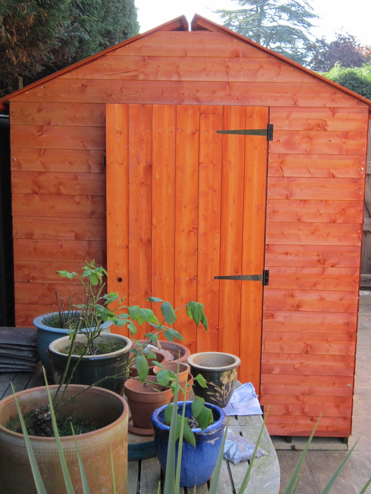 The deal is the shed is for Mr P but because it is so close to the house and can be seen from the french doors, I got to choose the colour. Tricky .... do you know how many lovely colours and shades there are?!?! I set out with Cornflower Blue in mind but when I was faced with a choice I began to dither. Willow? Sage? Bluebell? Country house Cream? Thankfully Mr P was on hand to speed things up and we came away with my first choice. Excellent decision ...... I LOVE IT.